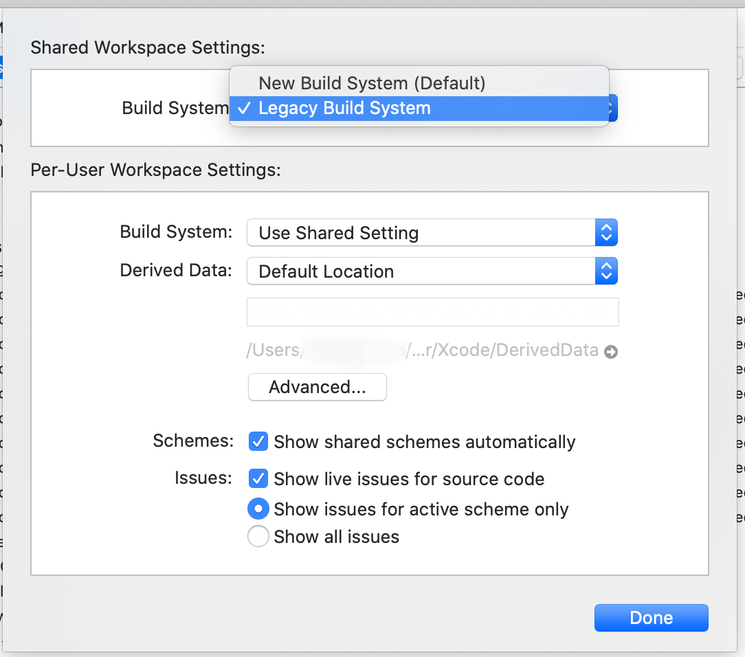 2. Shared Workspace Settings -> Build System 에서