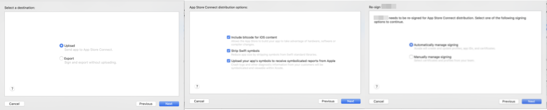 Product -> Archive 클릭후 빌드할 앱을 선택 한후에 App Store Connect 로 선택해서 진행한다.