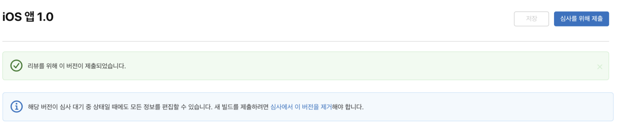 9. 해당 앱이 빌드 완료 할경우 심사를 위해 제출을 클릭하여 배포를 진행한다.