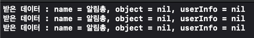 // 노티피케이션 센터 디폴트 post 로 데이터 스크림 발사 X3