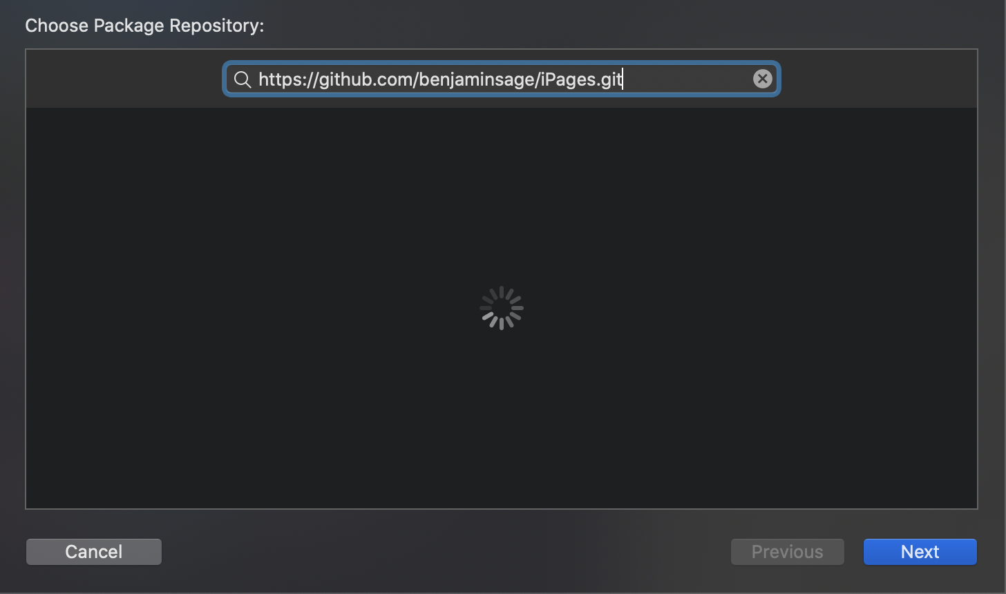 1-2 : 해당 Url 입력 https://github.com/benjaminsage/iPages.git 입력후 Next 클릭