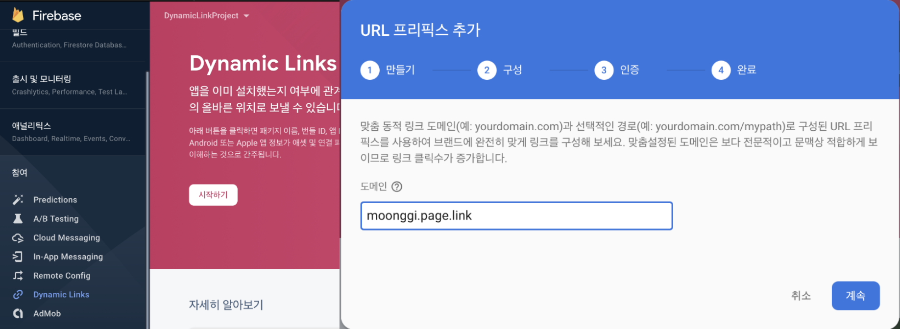 이제 DynamicLink 에 대해 알아보기전에 셋팅 해야하는구간이 있습니다.