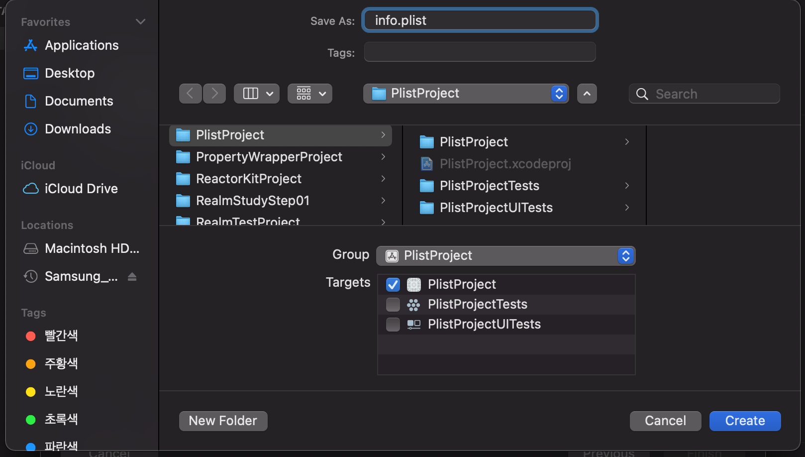 - 신규 Property List 파일을 추가합니다 (파일명은 info.plist)