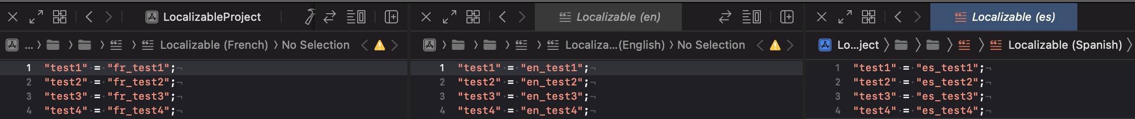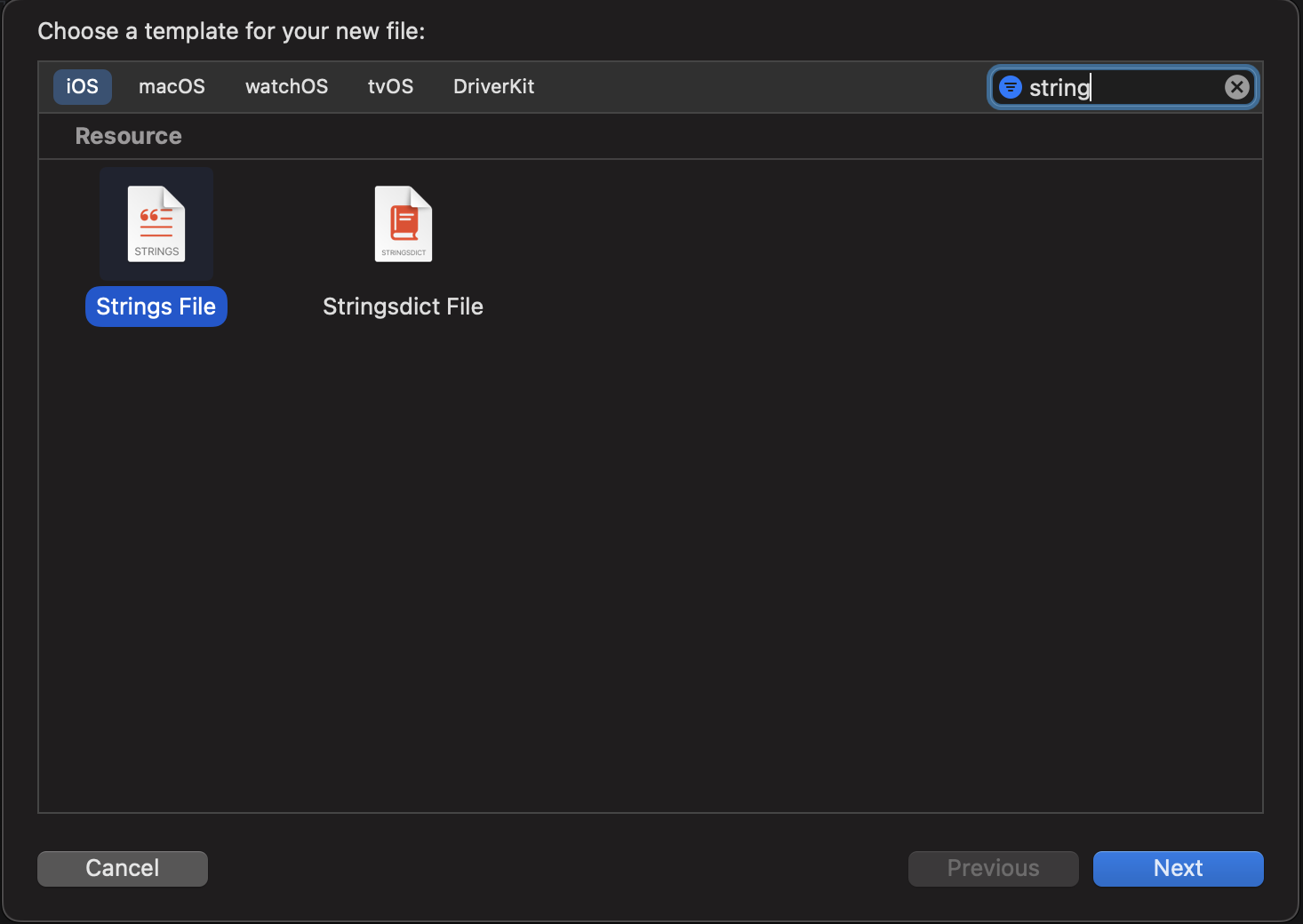 append 진행했던 문자에 대해 Localizable.strings 파일을 생성하고 해당 내용에 추가합니다.