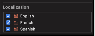 3-3. 생성한 strings 파일 우측에 Localization 이 있습니다. 모두 선택 해줍니다.