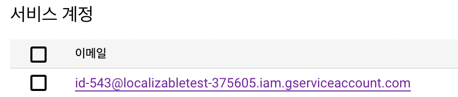 2-9. 사용자 인증정보 상에 서비스 계정 이메일을 클릭합니다.
