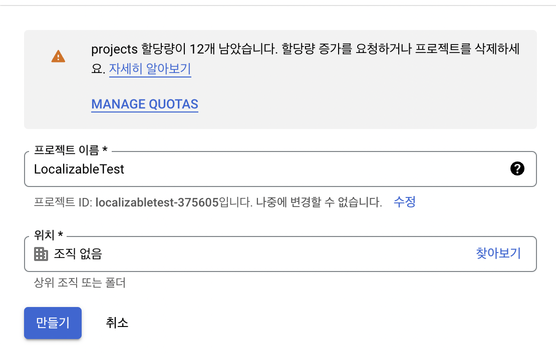 2-4. 프로젝트 이름 작성후 만들기 클릭합니다.